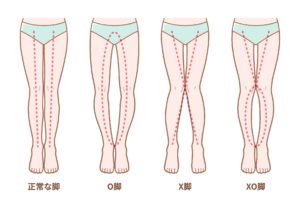X脚は、膝が内側に寄っている状態のことを指します。